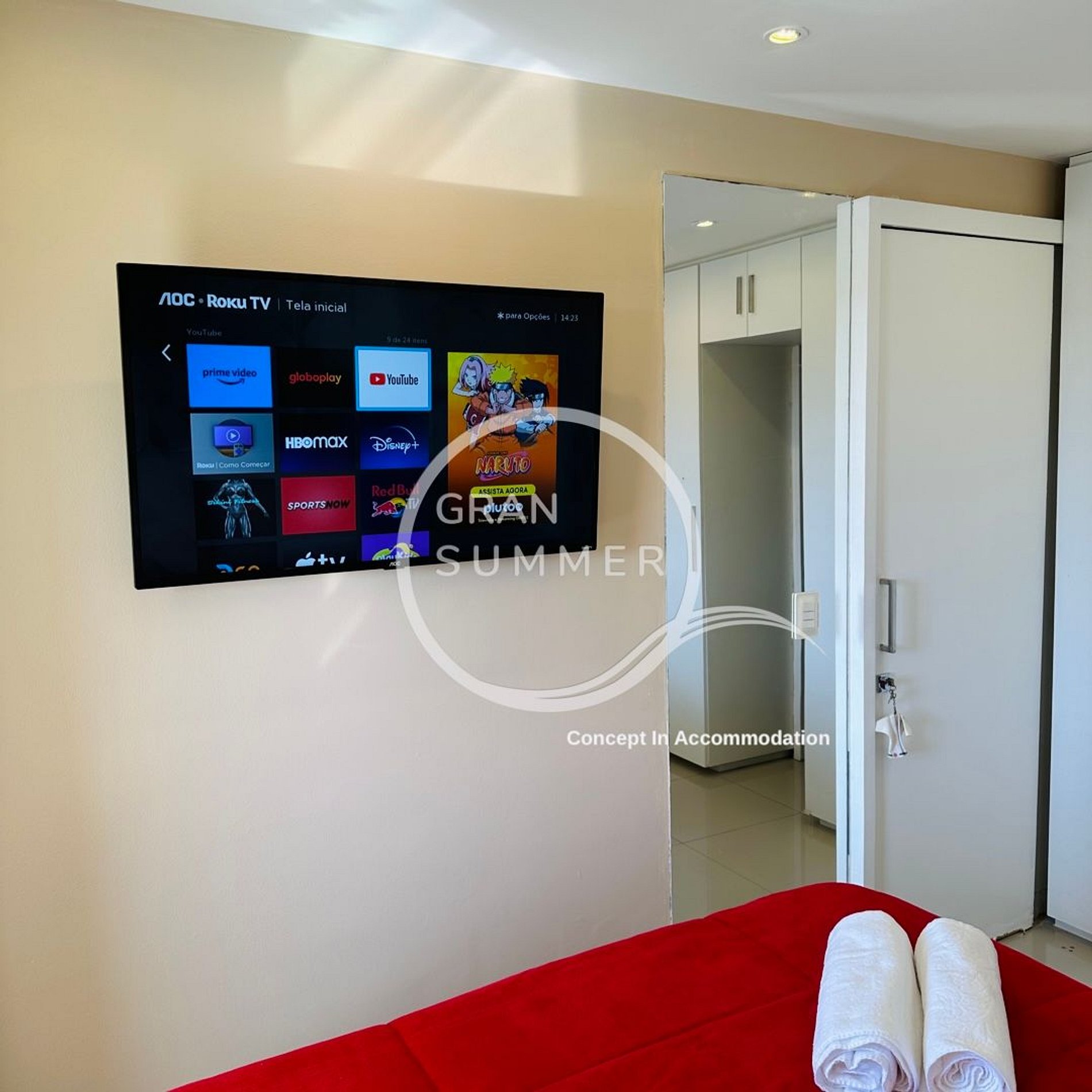 Trabalhamos com lençóis 400 fios para maior conforto na hora do descanso dos nossos hóspedes, nossas Smart tv's com qualidade 4K e telas 43'' e 60'' , Flats completos, Tudo isso e muito mais para proporcionar a melhor experiência para nossos clientes.